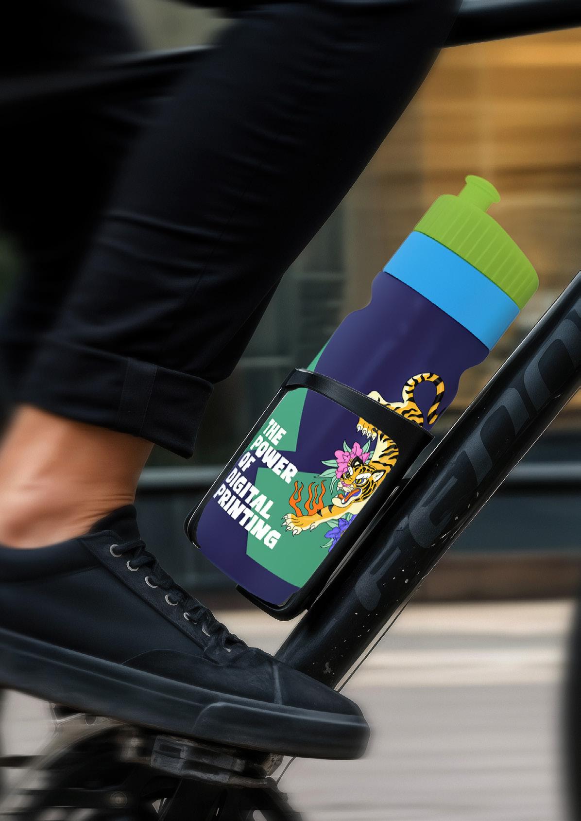 Einwandige Trinkflasche mit 600ml Fassungsvermögen. Wählen Sie Ihre eigene Kombination aus Deckel- und Flaschenfarbe. Hergestellt aus R-PET. Nur für kalte nichtkohlensäurehaltige Getränke geeignet.