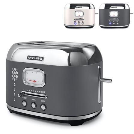 Dzięki temu pięknie zaprojektowanemu tosterowi od Muse możesz postawić na stole pyszne tosty. Ten toster w stylu retro może pomieścić dwa tosty. Toster jest wyposażony w sześć ustawień opiekania, które są wyświetlane na analogowym wyświetlaczu.