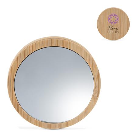 Deze kleine spiegel is omgeven door een frame van bamboe. De stijlvolle zakspiegel geeft je overal de mogelijkheid om jezelf te bekijken in de spiegel.