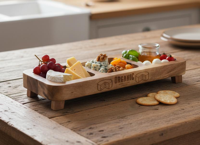 Dette snackbord i akacietræ fra InSideOut er perfekt til servering af nødder, peanuts, tapas eller osteterninger under en drink. Bordet er 35 cm og har præformede skåle, så det er et blikfang på ethvert drinksbord. Det FSCcertificerede akacietræ har en smuk, varm farve og er desuden holdbart, vandafvisende og antibakterielt. Et logo kan placeres på bordets kant.