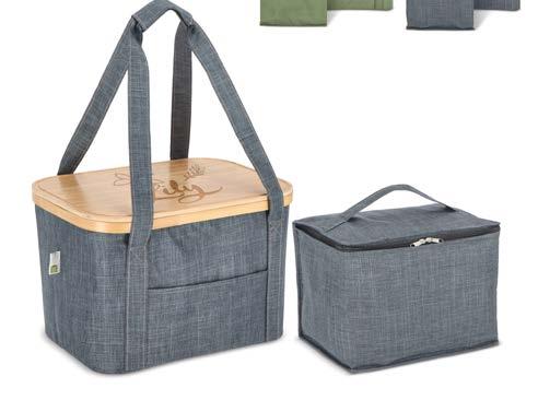 Sogne folding (cool) basket från InSideOut är en hållbar, multifunktionell väska tillverkad av återvunnet material och bambu. Med en matchande löstagbar isolerad kylväska, ett bambulock som kan användas som skärbräda och den vikbara designen är den här korgen perfekt för utomhusaktiviteter. Idealisk för varumärkesprofilering och utrymmesbesparing.