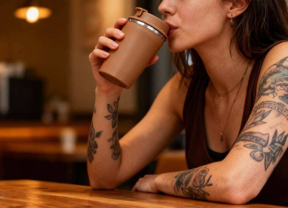 Denna dubbelväggiga isolerade mugg håller dina drycker varma i upp till 4 timmar och kalla i upp till 8 timmar. Den passar perfekt under din kaffemaskin. Den innovativa keramiska beläggningen på insidan gör att din dryck håller sig varm utan någon metallisk eftersmak. Det totala återvunna innehållet är 95% av artikelns vikt.