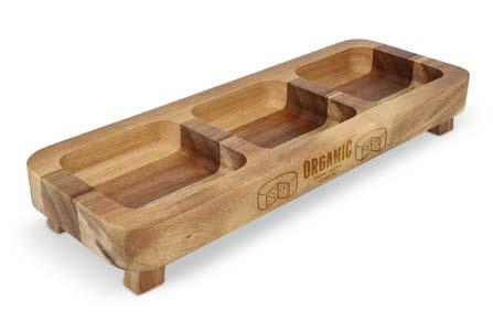 Detta snackbord i akaciaträ från InSideOut är perfekt för att servera nötter, jordnötter, tapas eller ostbitar under en drink. Bordet är 35 cm och har förformade skålar, det är en prydnad på varje drinkbord. Akaciaträet från ansvarsfullt skogsbruk har en vacker varm färg och är dessutom vattenavvisande och antibakteriellt. Kan profileras på kanten.