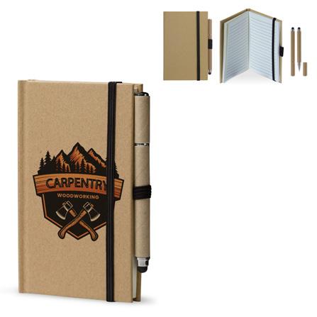 Notizbuch mit Umschlag aus Karton in A6 Format mit Gummiband und 160 linierten cremefarbigen Seiten, inkl. Karton Stylus Kugelschreiber.