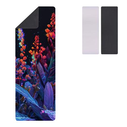 Progettato per dare comfort e stabilità, questo tappetino da yoga è la base ideale per i vostri esercizi fisici. Completamente personalizzabile con stampa in sublimazione, perfetto per un disegno o un logo su larga scala. La base in gomma resistente garantisce una presa sicura e antiscivolo, mantenendo la posizione stabile.