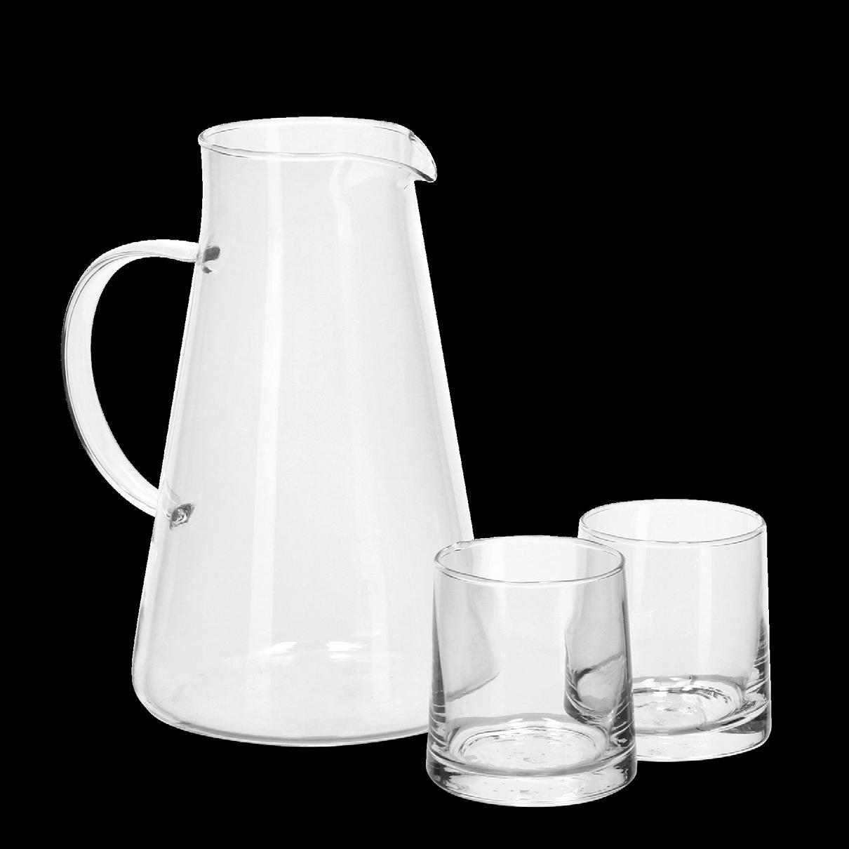 LT82835 | Karaffe 550ml und Trinkglas 250ml Set Trinken Sie stilvoll mit unserem Set aus Karaffe und Trinkglas. Die 550-ml-Karaffe und das 250-ml-Glas stehen für Eleganz. Perfekt für den Platz neben dem Bett oder auf dem Schreibtisch während der Arbeit. Größe: ø 74 x 176 mm. Inhalt: 550 ml
