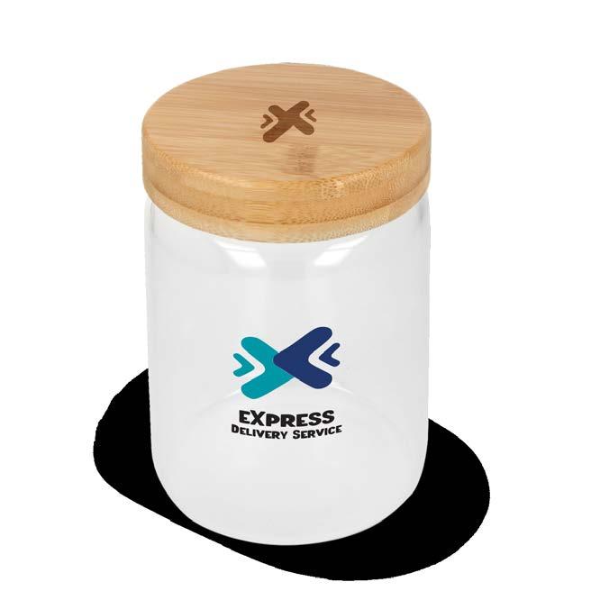 Stil. Aus hochwertigem Glas mit einem nachhaltigen FSC-Holz- oder Korkverschluss. Personalisieren Sie mit einem Vollfarbdruck oder einer Lasergravur für einen einzigartigen Look.