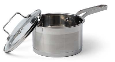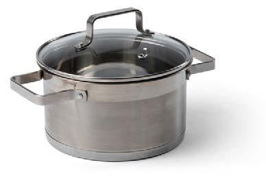 Elegante e pratica casseruola in acciaio con due manici. Il coperchio della pentola è in vetro trasparente con manici in acciaio. Funziona anche su piani di cottura a induzione. Dimensioni: ø 180 x 150 mm