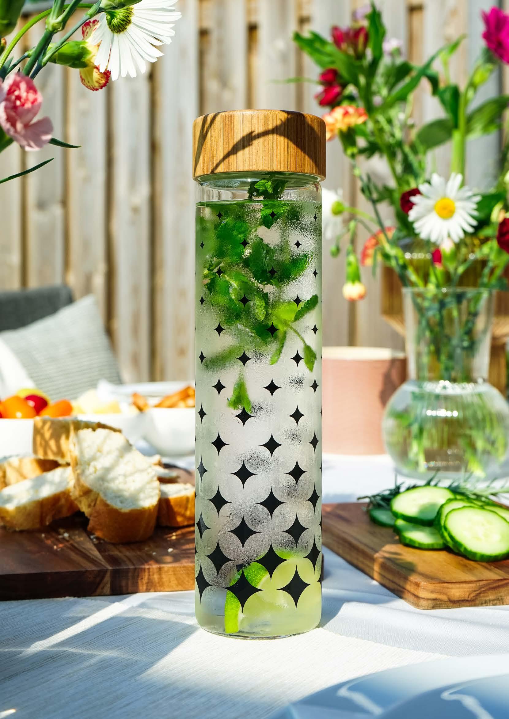 Sperimentate stile e sostenibilità con la nostra borraccia in vetro da 500 ml e il coperchio in bambù. Perfetta per ogni occasione, aggiunge un tocco naturale alla vostra routine di idratazione. Ideale per il lavoro, la scuola o le commissioni, questa bottiglia riutilizzabile è il vostro compagno di idratazione quotidiana. Dimensioni: ø 63 x 225 mm. Contenuto: 500 ml