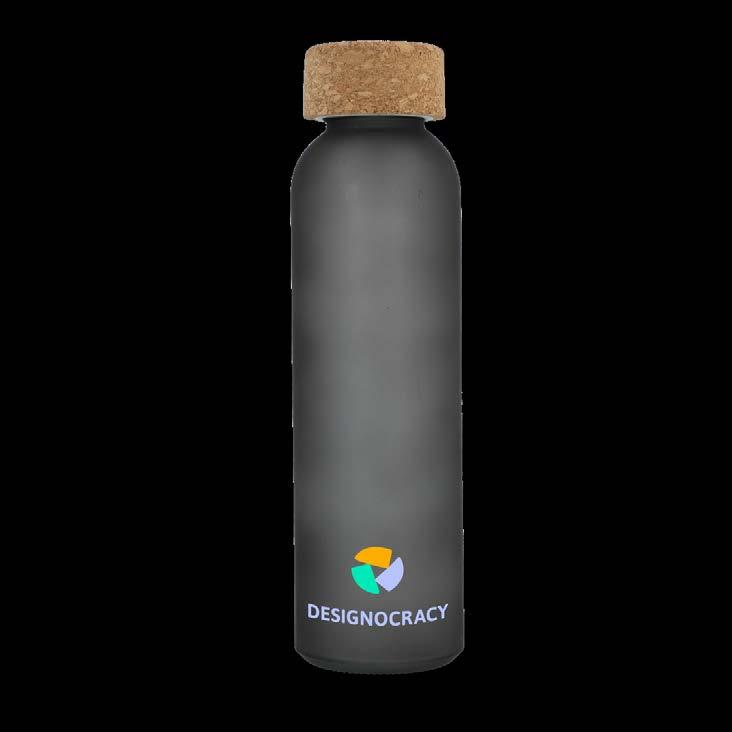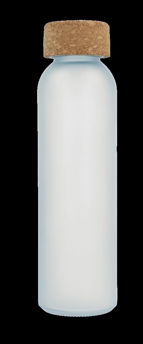 Bottiglia elegante in vetro opaco con tappo in sughero naturale, ha una capacità di 500 ml. Dimensioni: ø 66 x 205 mm.