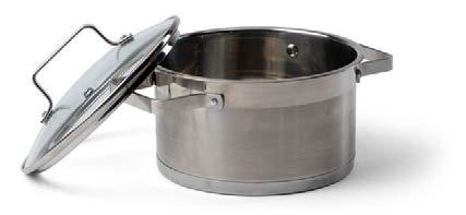 Elegante e pratica casseruola in acciaio con due manici. Il coperchio della pentola è in vetro trasparente con manici in acciaio. Funziona anche su piani di cottura a induzione. Dimensioni: ø 180 x 150 mm