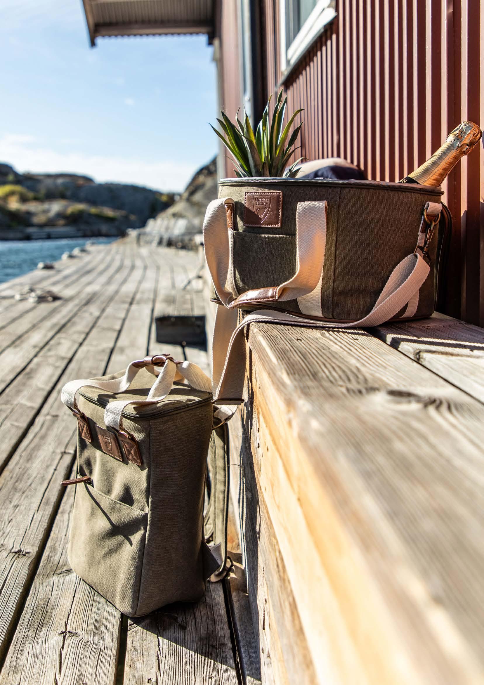 Borsa frigo in tela Orrefors Hunting. Elegante borsa frigo compatta a zaino in tela robusta, con ampio scomparto principale e tre tasche più piccole per gli accessori. Esterno in resistente tessuto di tela con robuste cinghie posteriori regolabili. Dimensioni: 130 x 240 x 350 mm