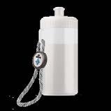 Enkelwandige drinkfles van trital materiaal met transparant gekleurde dop. Deze fles is uitgerust met een handige siliconen band zodat deze eenvoudig te dragen is of om bijvoorbeeld aan een tas te bevestigen. De fles is alleen geschikt voor koude, niet-koolzuurhoudende dranken.