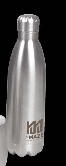 Dobbeltvægget vakuumisoleret drikkeflaske. Den 100% lækagesikre flaske er pakket i en gaveæske. Flasken holder drikken på den rigtige temperatur længere, på grund af vakuum mellem væggene. Drikkevarer forbliver varme op til 12 timer og/eller kolde op til 24 timer. Flasken har en pulverlakering der giver en mere eksklusiv overflade. Størrelse: ø72x218mm. Indhold: 500ml