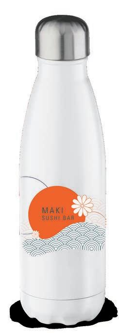 Ruostumattomasta teräksestä valmistettu yksiseinäinen vesipullo. 100% vuotamaton pullo on pakattu lahjapakkaukseen. Pullossa on jauhepinnoite, joka antaa pullolle laadukkaamman ilmeen. Sopii kylmille, hiilihapottomille juomille. Koko: ø72x168mm. Sisältö: 500ml 10 25 50 100 21,64 17,67 16,49 16,01 Hintaan sisältyy digitaalinen painatus all-over Aloituskulut: 72,00 € per painatus, tilaus