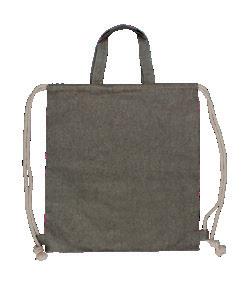 Kätevä kiristysnauhalaukku kahvoilla. Valmistettu kierrätetystä puuvillasta. Materiaalin eri lähteet antavat kankaalle ainutlaatuisen ilmeen. Pienet värivaihtelut ovat väistämättömiä ja todellinen merkki laukun kierrätysluonteesta. Koko: 380x420mm