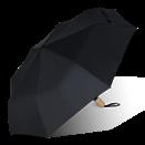 R-PET-sateenvarjo, jossa on aito puukahva. Lasikuidusta valmistetut osat tekevät tästä sateenvarjosta tuulenpitävän ja se avautuu yhdellä napin painalluksella. Koko: ø940x300mm