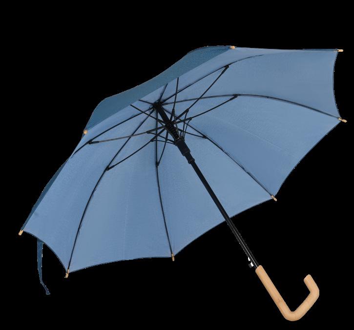 Het doek van deze nieuwe duurzame paraplu’s is gemaakt van RPET (gerecycled PET-flessen). De stokparaplu’s zijn verkrijgbaar met verschillende soorten houten handvaten en geven een hoogwaardige, duurzame ‘look’.