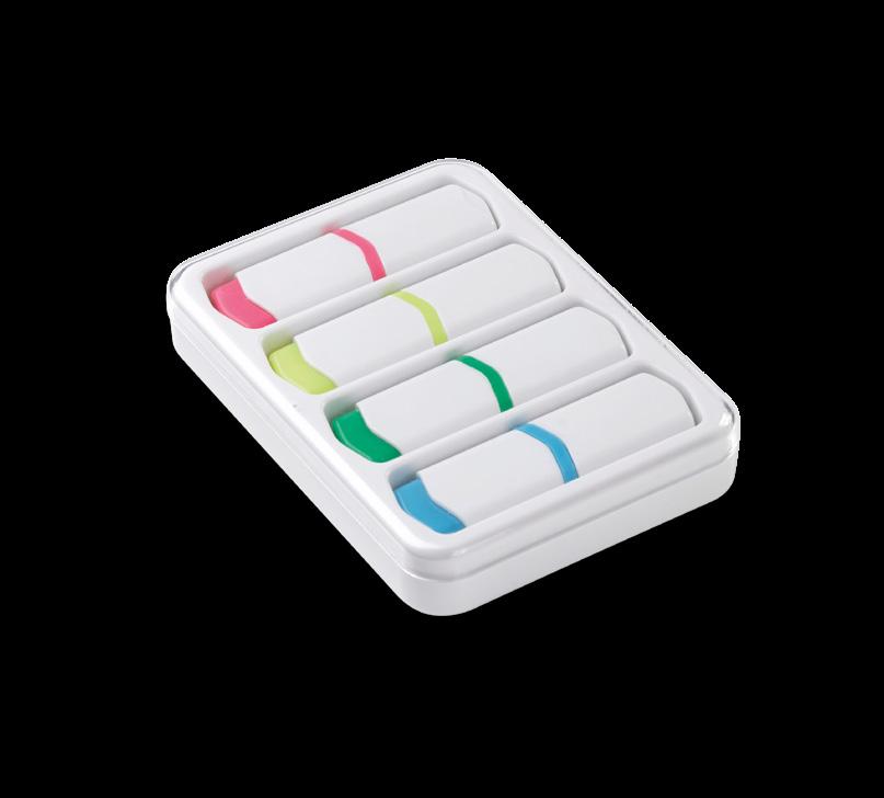 Set de 4 marcadores básicos en caja de plástico con tapón transparente. Los marcadores son un diseño de Toppoint único. El color de la escritura está resaltado encima. Tamaño: 23 x 128 x 128 mm