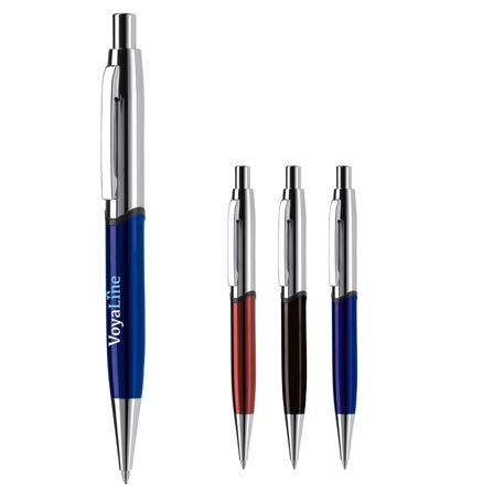 Europaproducerad snygg och elegant plastpenna med tåligt klips. Skriver 4,5 kilometer och finns i flera solida färger. Mått: ø 12 mm