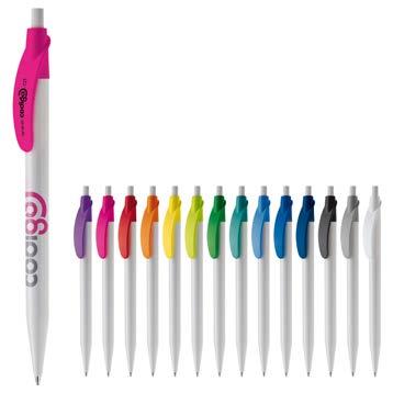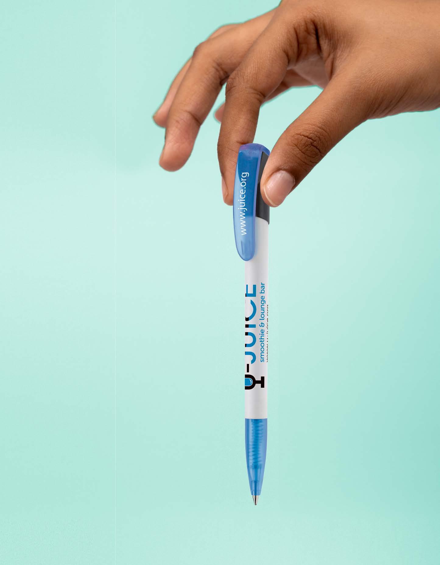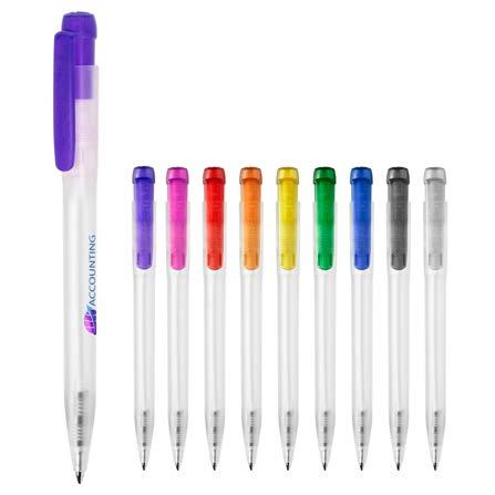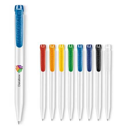 Europaproducerad kulspetspenna med kvalité i alla delar, ISO certifierad bläckpatron. Välj färg på de olika delarna för att skapa en unik färgkombination redan från 250 st. Det finns flera olika transparanta och solida färger att välja mellan.