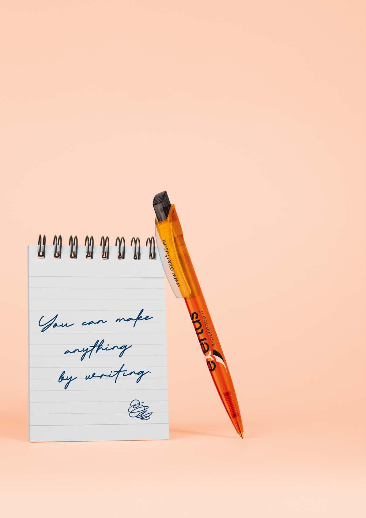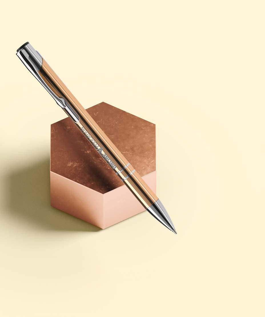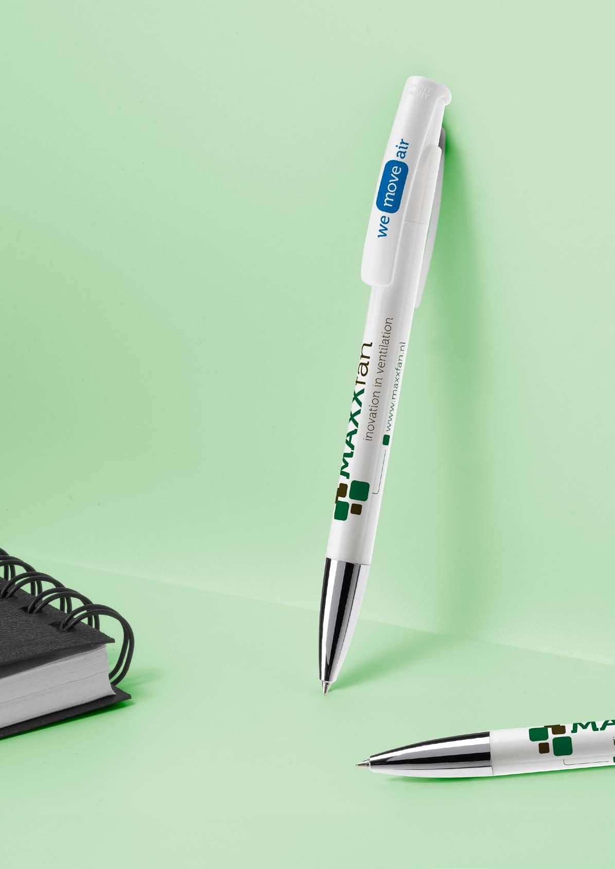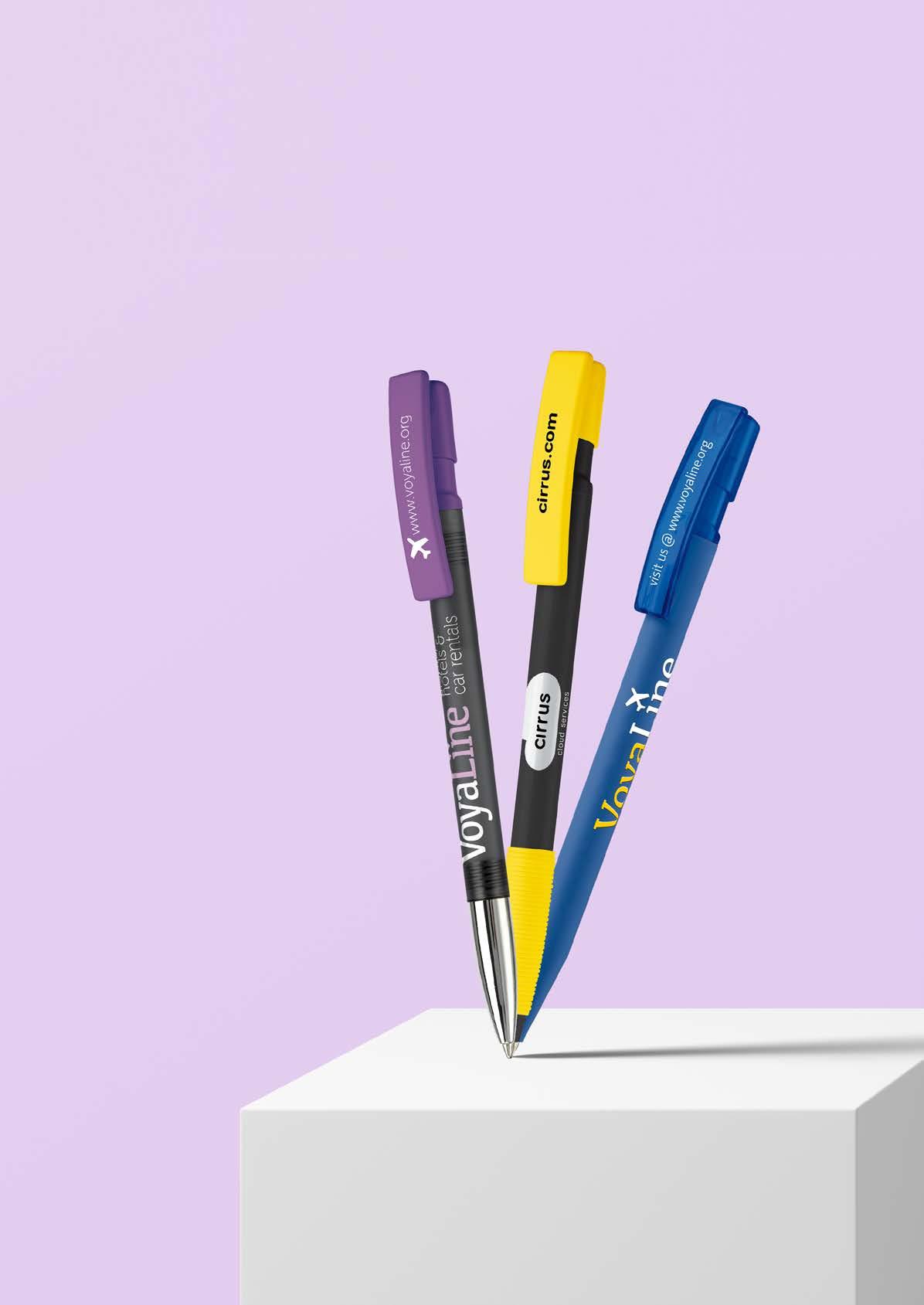 Från eleganta kulspetspennor till innovative fidget-pennor. I ögonfallande pennor som inbjuder till skrivande. Perfekta att trycka din logotype på och alltid synas på varje skirvbord.