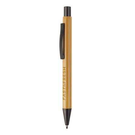 Vi presenterar vår bambukulspetspenna, elegant presenterad i ett bamburör. En stilfull och omtänksam gåva som kombinerar naturliga material med skrivkomfort.