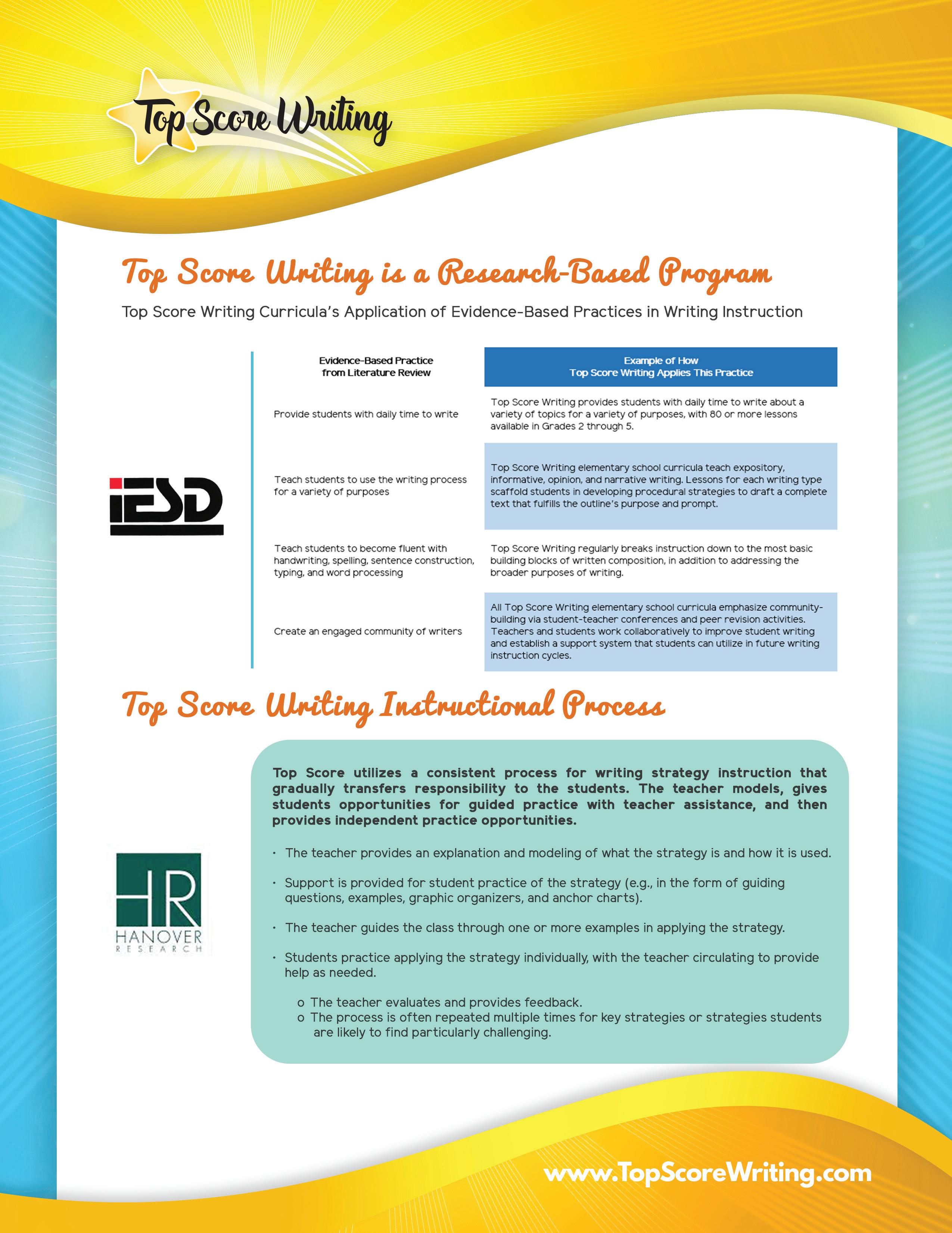 Top Score Writing Curricula’s Application of Evidence-Based Practices in Writing Instruction