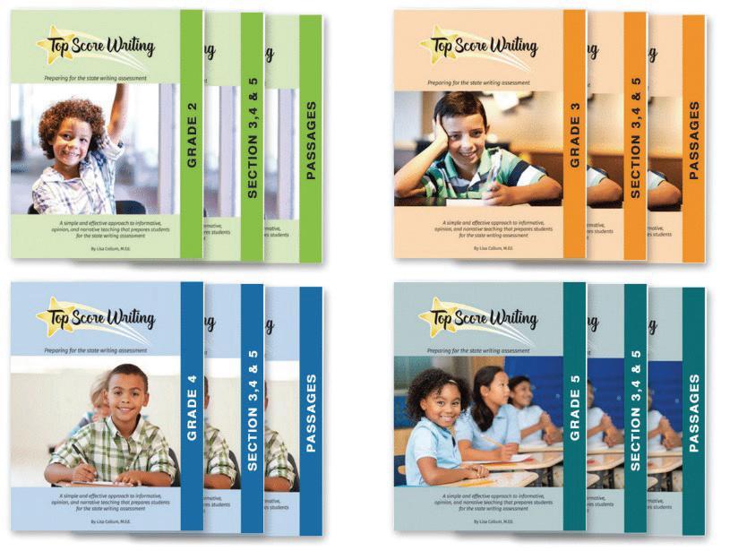 Top Score Writing works. Students of all levels and aptitudes thrive using our system, which has been proven to increase writing scores by an average of 70% based on real data. Di erentiation is incorporated organically throughout the curriculum, ensuring struggling students leap forward and advanced students reach higher levels. Teachers benefit as well. Top Score Writing relieves teachers from having to piece together materials and invent their own writing lessons. No additional outside materials are needed, saving teachers valuable time and money. With more than ever on their plates, teaching writing can be the easiest part of their day.