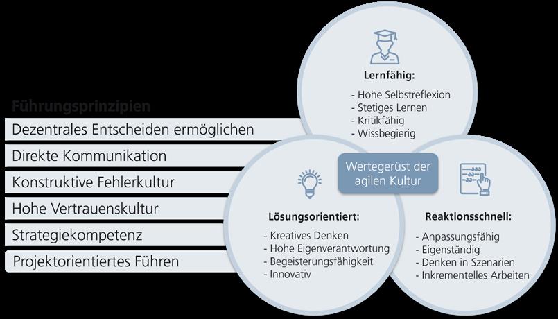 Die aus den agilen Werten abgeleiteten Füh rungsprinzipien bilden Handlungsgrund sätze und wichtige Führungsleitplanken für das Management. Sie sind die Basis für eine moderne Führung [Jenny 2022]. <<
