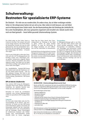 Mit KI den sinnvollsten Wartungstermin ermitteln Seite 14 Einfaches und schnelles Unternehmenswachstum mit Cloud ERP Seite 21 Prozesse durchgängig verpackt Seite 22 Schulverwaltung: Bestnoten für spezialisierte ERP-Systeme Seite 38