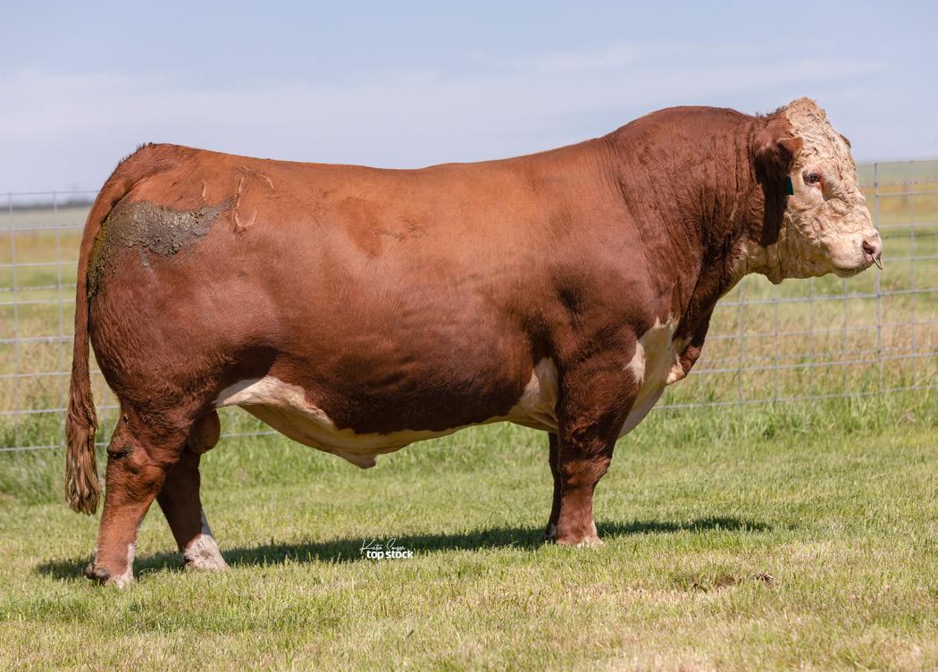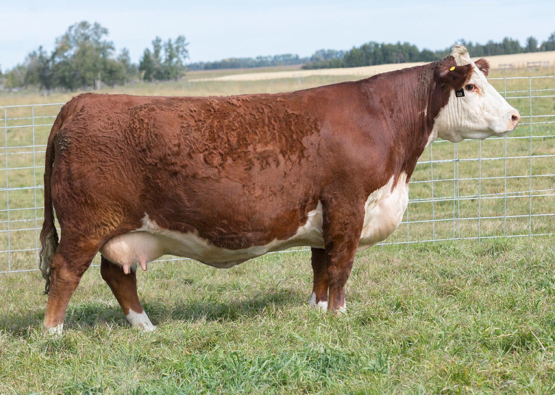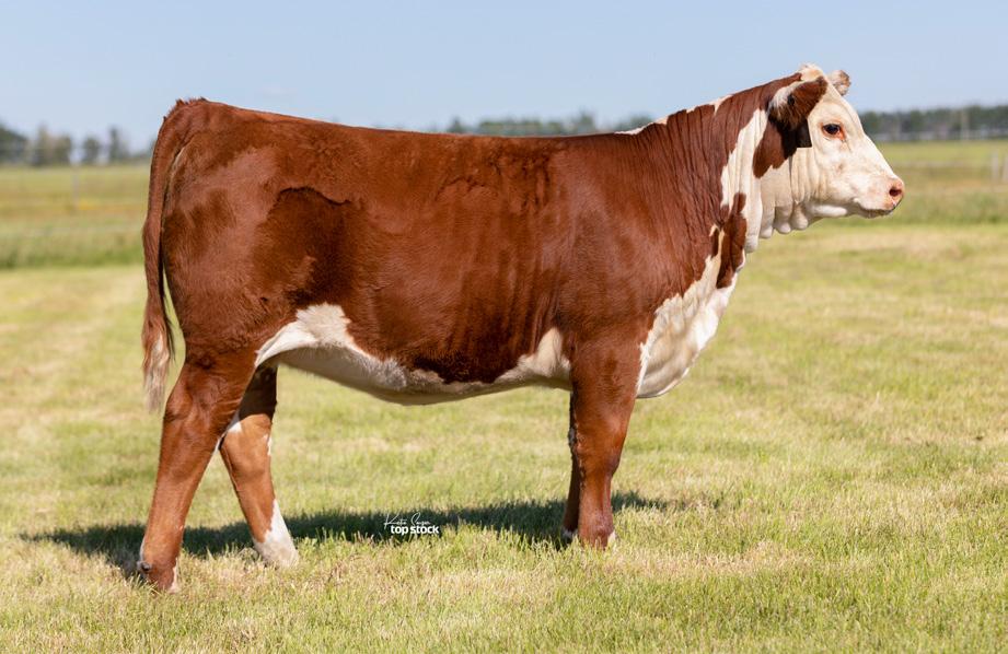 Without a doubt, Ms Candy 14K is a ground shaker, when she walks around the field or the ring; her stride, shape, dimension and presence is astounding. Phenotypically she is impactful, her pedigree stacks up with 49F on the bottom side as a young dam who produced Harvie OVHF Medcalfe 55J, the Alberta Herford Showcase Champion Bull Calf, CWA Res Sr Champion Bull Calf and high selling bull in the 2022 Harvie Ranching Annual Bull Sale for $32,000 CDN. On the top side of her pedigree, NJW Steward 98G put a big stamp on our herd this year with standout calves. We will have several in our sale and string this fall. We look forward to working with a partner on showcasing Ms Candy and managing her to her full potential. Selling ½ interest, no possession. Entered in CWA.