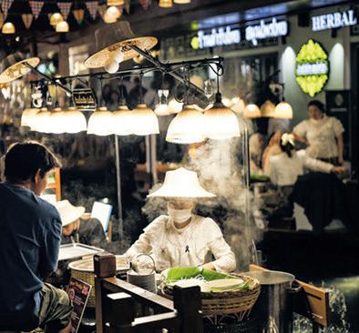 Här är maten ett kall i stället för ett måste. Ett sätt att leva i nuet genom samvaro. När kvällen mörknar och gatubelysningen reflekteras från wokpannorna slår Bangkoks hjärta starkast.