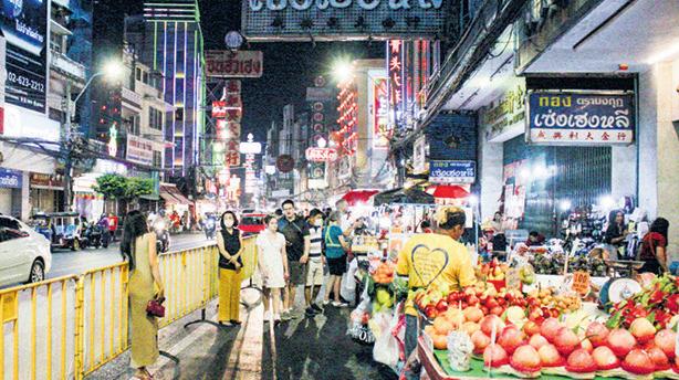 Gatornas värme och Chinatowns puls Mot kvällen förändras Bangkok. Yaowarat, stadens berömda Chinatown, lyser upp i neonfärger. Gatorna fylls av ljud, os och människor som långsamt rör sig från stånd till stånd, bland små plastbord och stekdoft.