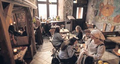 Toisinaan ryhmät kokoontuvat maistamaan talon omia oluita ja viinejä, seuraavassa hetkessä heidät tempaistaan mukaan tarinoihin ja esityksiin, jotka herättävät historian eloon.