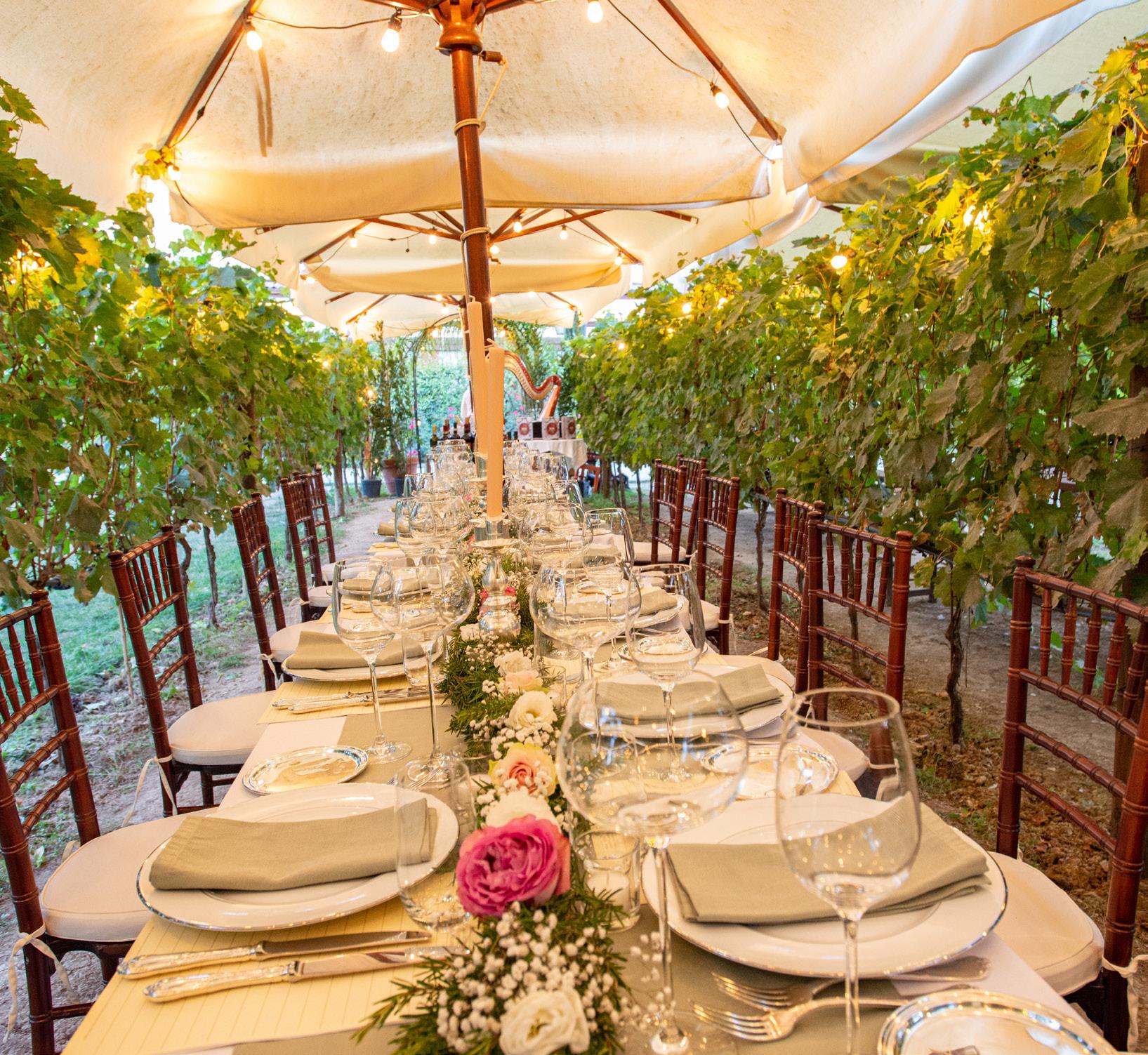 Tenuta Torciano offers the perfect backdrop for your wedding in Tuscany. With a wide array of venues throughout the property, we can accommodate both large and small groups in different locations. If you choose to organize your event in spring or summer, our outdoor spaces provide a stunning setting. You can hold your ceremony directly in the vineyard, where a beautiful pavilion stands at the center of our helical vineyard, offering a picturesque and romantic ambiance. For winter weddings, Tenuta Torciano Winery transforms into a marvelous setting with its warm and cozy atmosphere. Our wine cellars with wooden barrels, with its charming character, will make your special day an unforgettable experience.