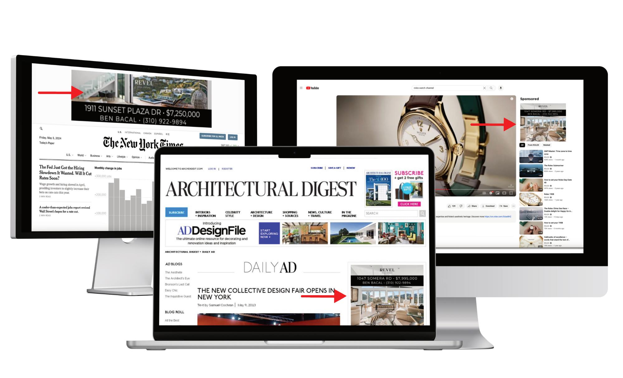 We create striking digital ads for your listing, designed to capture the attention of high-net-worth buyers These ads are strategically displayed online and focus on retargeting individuals who have shown interest in luxury real estate By leveraging Google?s expertly curated lists, we reach active luxury property seekers and those with distinct luxury interests, ensuring your listing gets maximum exposure and impact.