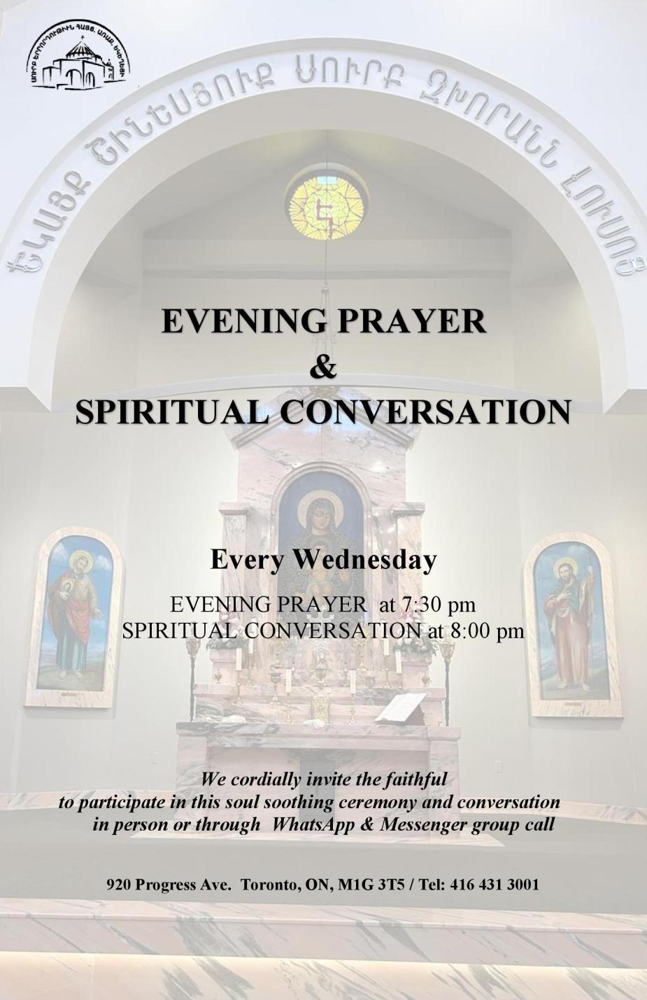 պաղատանքը այս երեկոյեան ժամուն, Դուն, որ առատաձեռն ես ամենուն հանդէպ, Քու բարի պարգեւներովդ ողորմէ, Տէր, ամբողջ աշխարհին Քու սուրբ եկեղեցիիդ. հիւանդներուն, խոստովանողներուն, ապաշխարողներուն