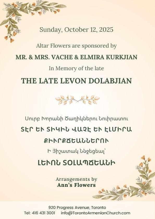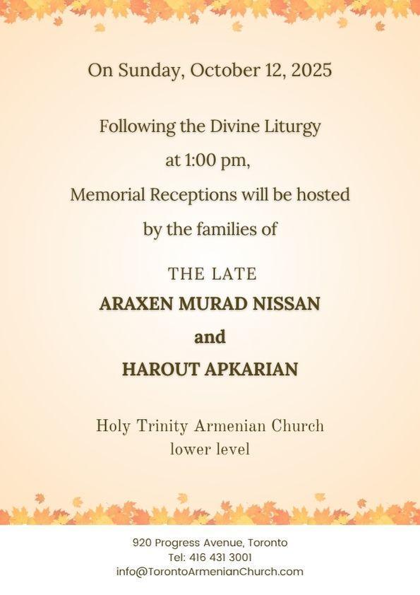 www.TorontoArmenianChurch.com info@TorontoArmenianChurch.com @TorontoArmenianChurch.com