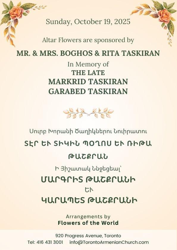 www.TorontoArmenianChurch.com info@TorontoArmenianChurch.com @TorontoArmenianChurch.com
