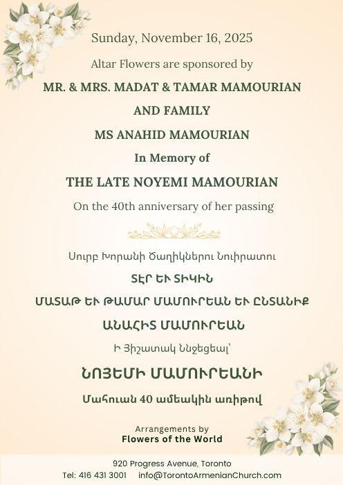 Executive Secretary, Ani Sarvarian Ani@TorontoArmenianChurch.com