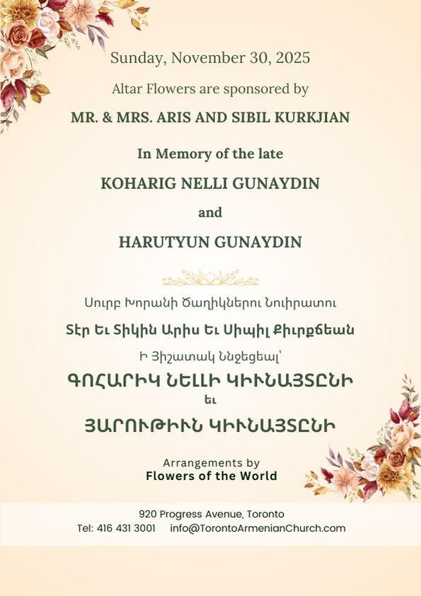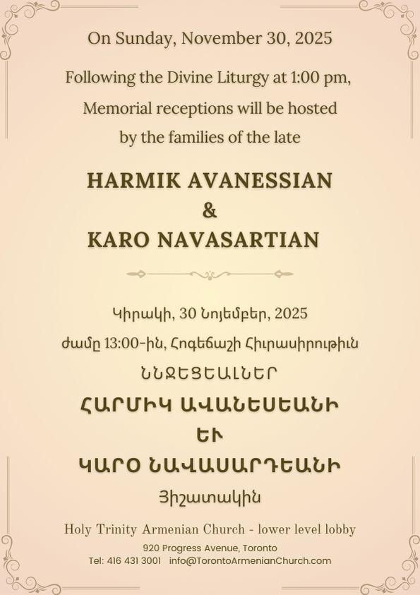We thank all our donors for supporting Holy Trinity Armenian Church through their heartfelt donations. If you prefer to stay anonymous, please contact the Church office and inform the administration.