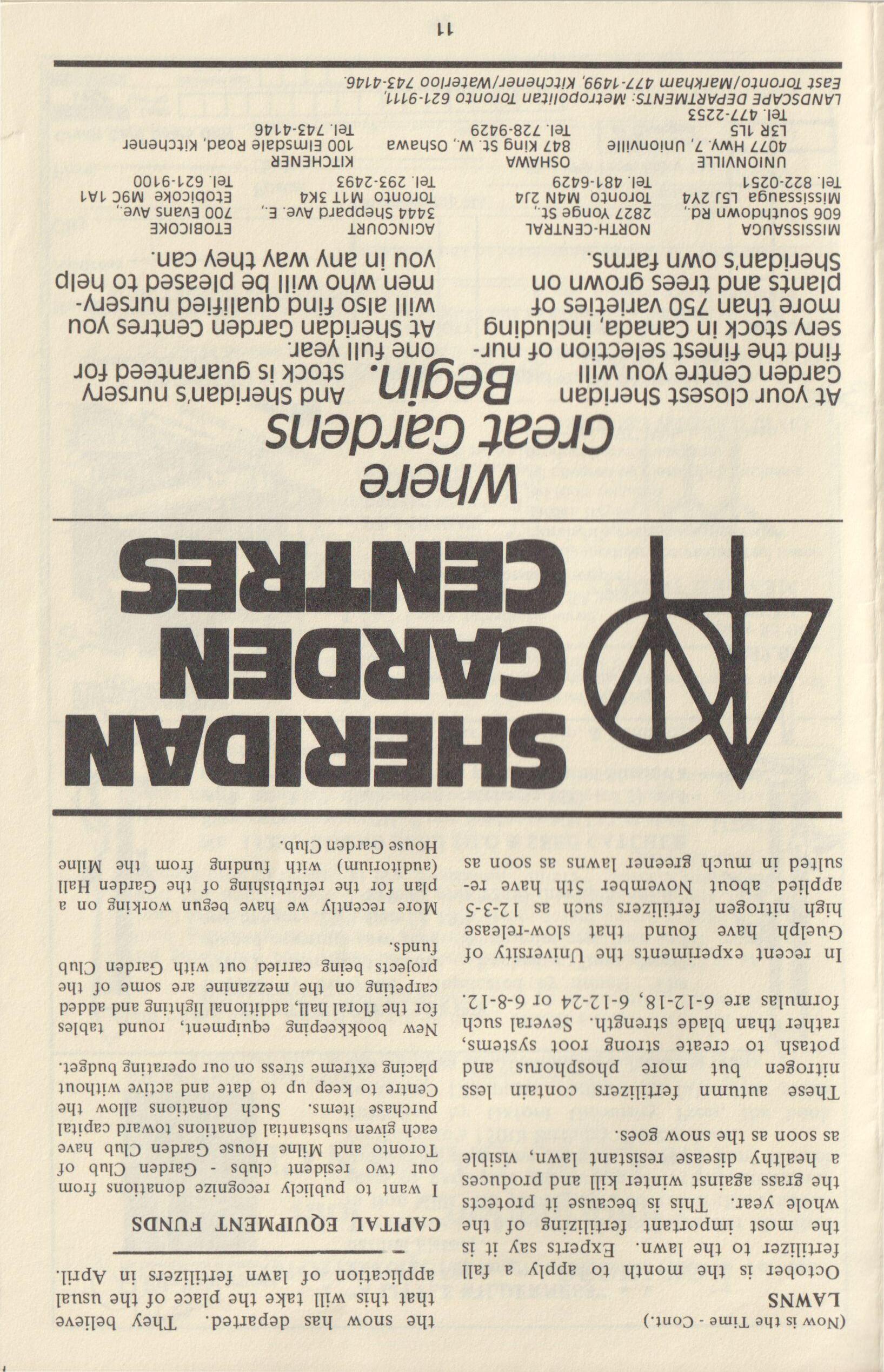 LANDSCAPE DEPARTMENTS: Metropolitan Toronto 621-9111, East Toronto/Markham 477-1499, Kitchener/Waterloo 743-4146.