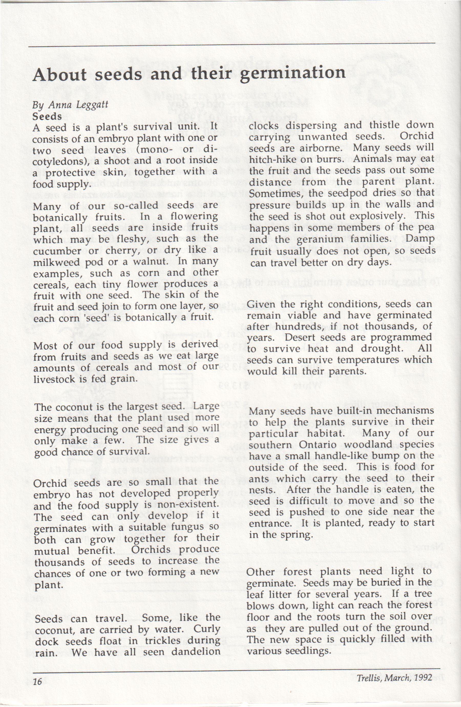 Anna Leggatt's article in this issue, About seeds and seed germination, is a sound primer and explores their makeup and germination requirements.