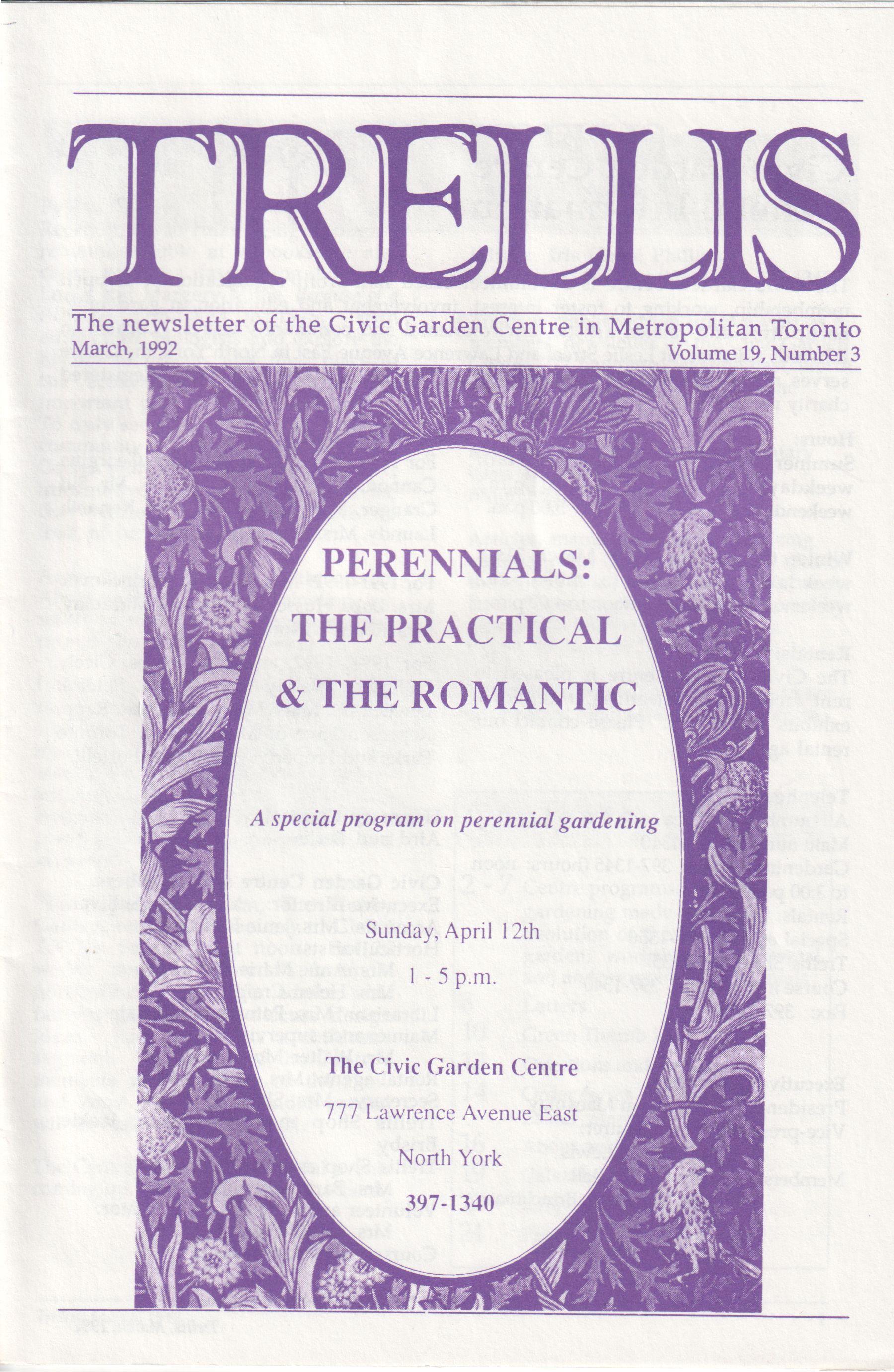 The newsletter of the Civic Garden Centre in Metropolitan Toronto March, 1992 Volume 19, Number 3