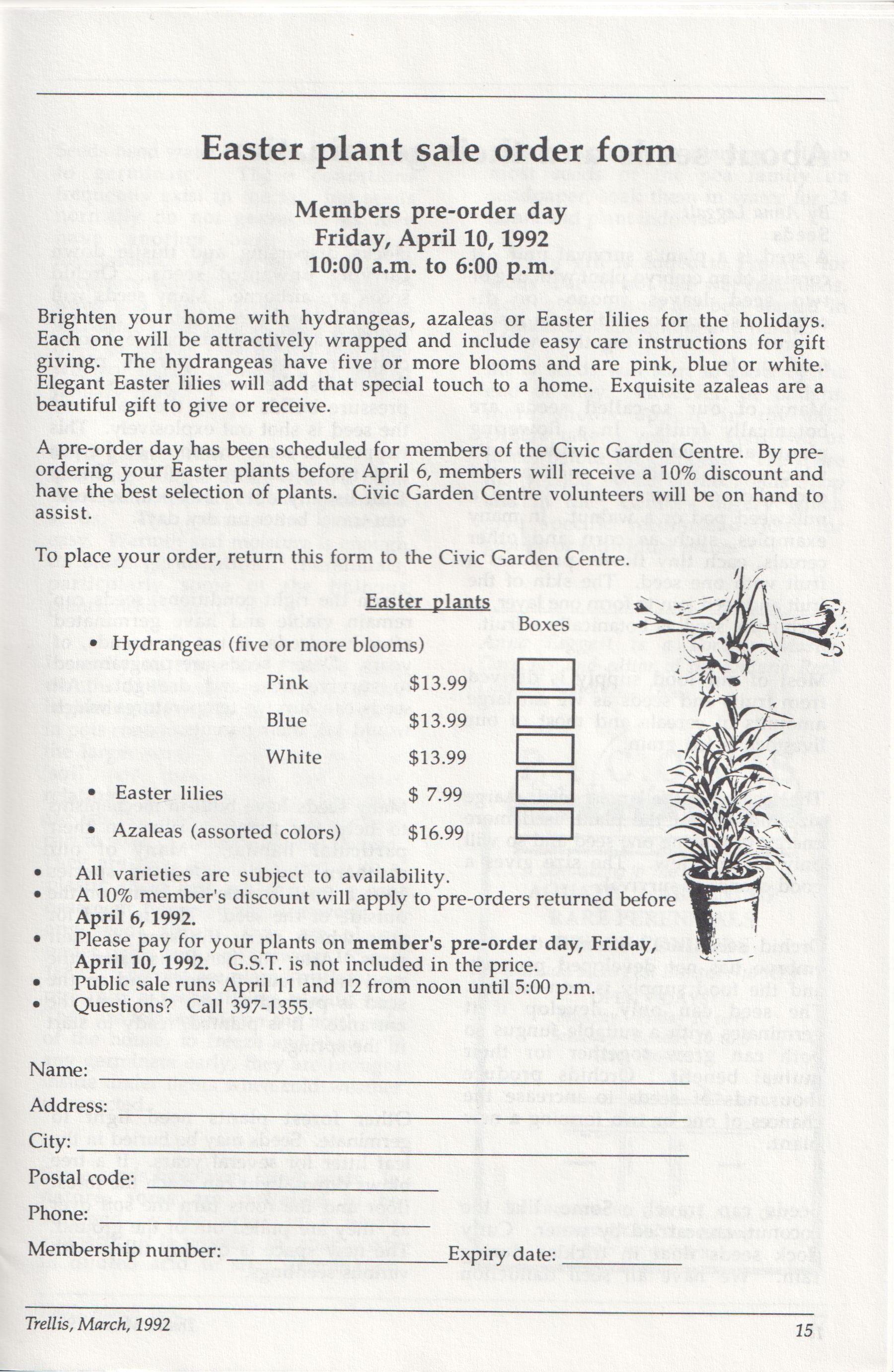 Mail to: The Civic Garden Centre, 777 Lawrence Avenue East, North York, Ontario M3C 1P2