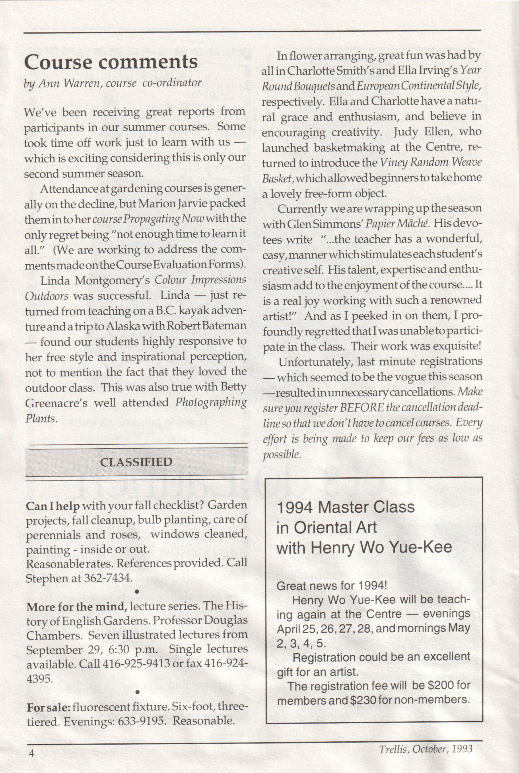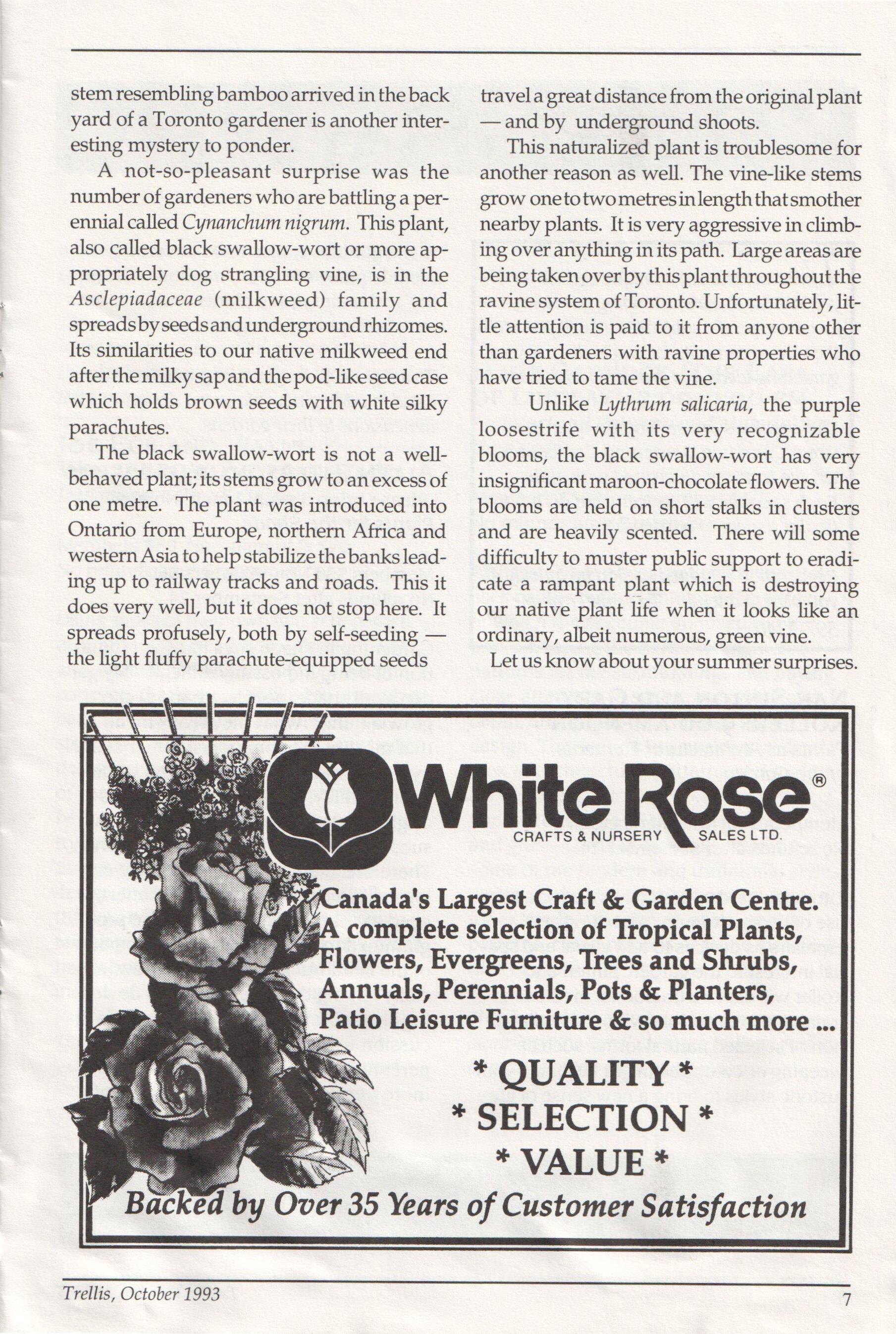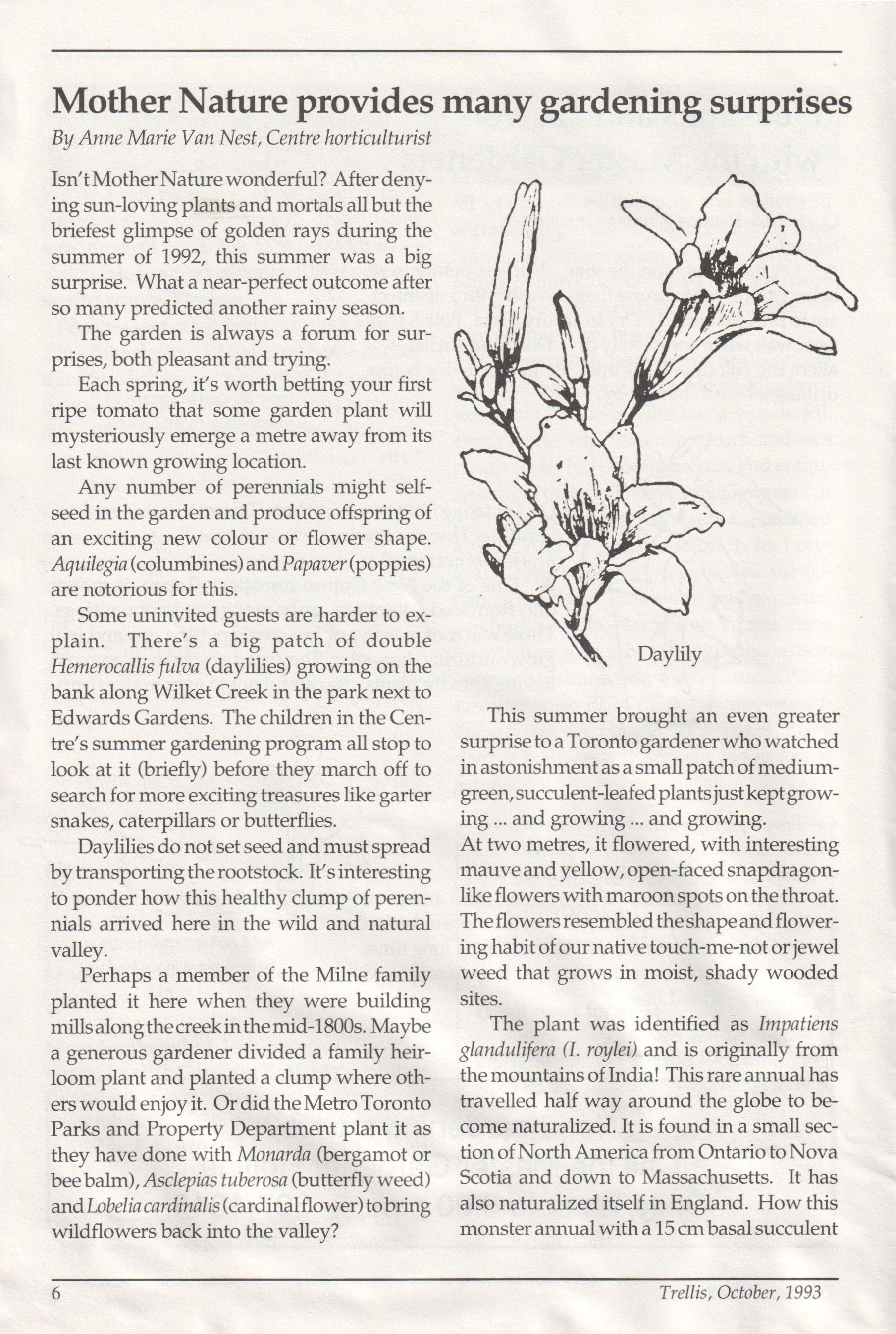 The newsletter of the Civic Garden Centre in Metropolitan Toronto October, 1993 Volume 20, Number 9