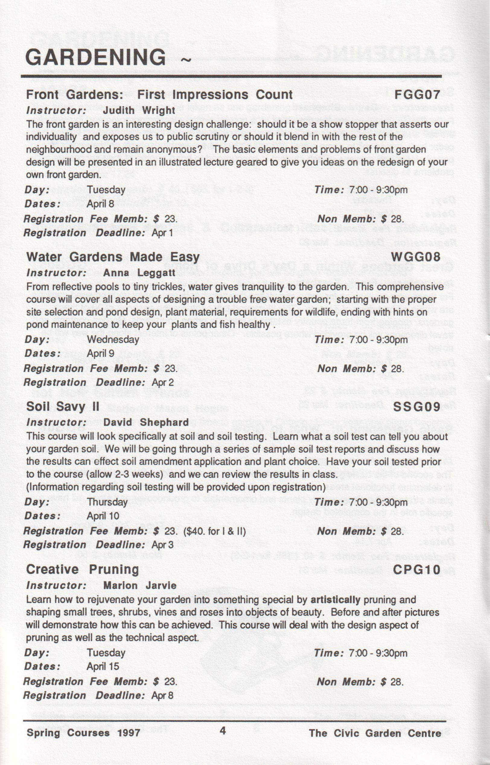 Spring Courses 1997 13 The Civic Garden Centre