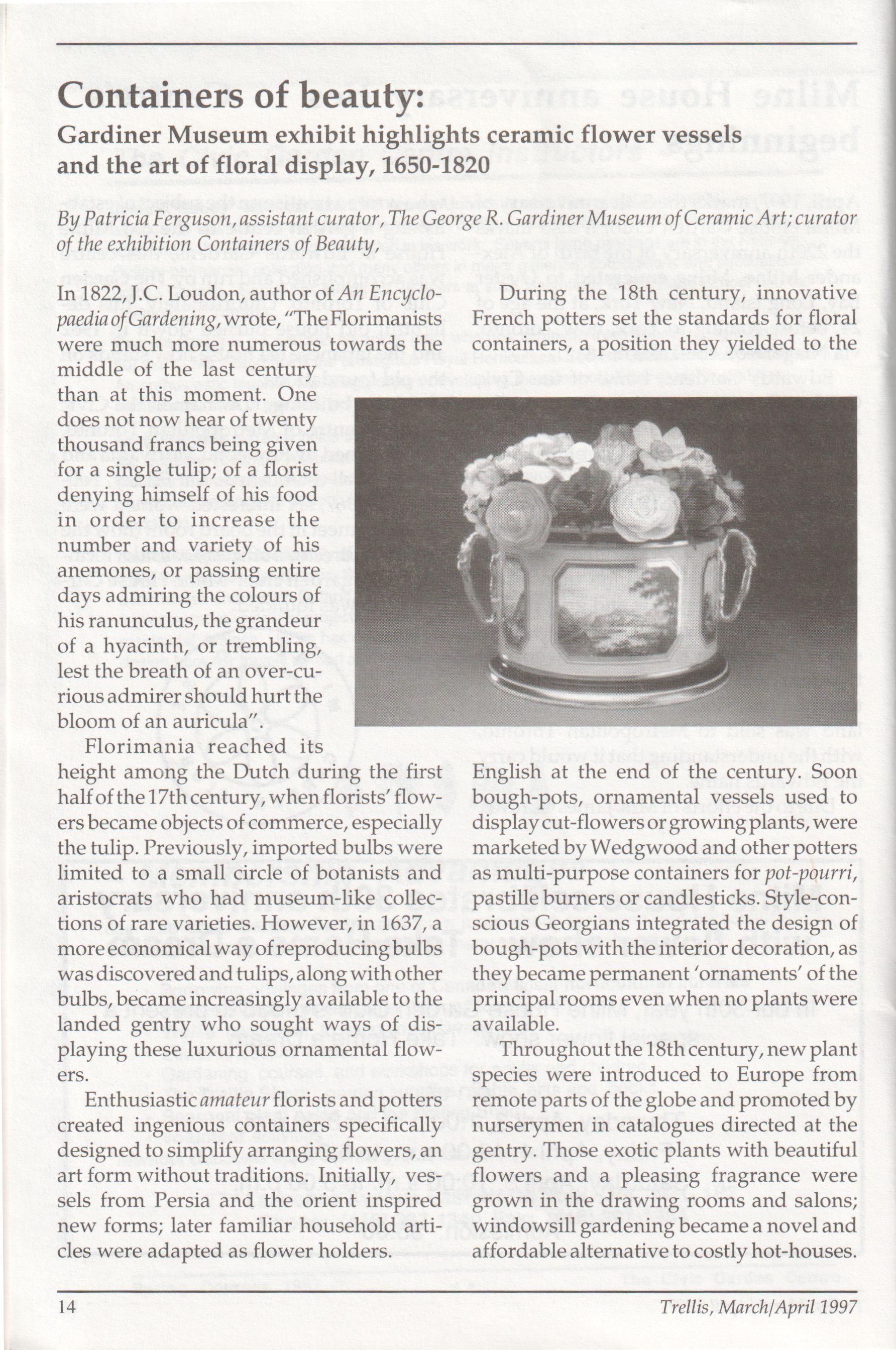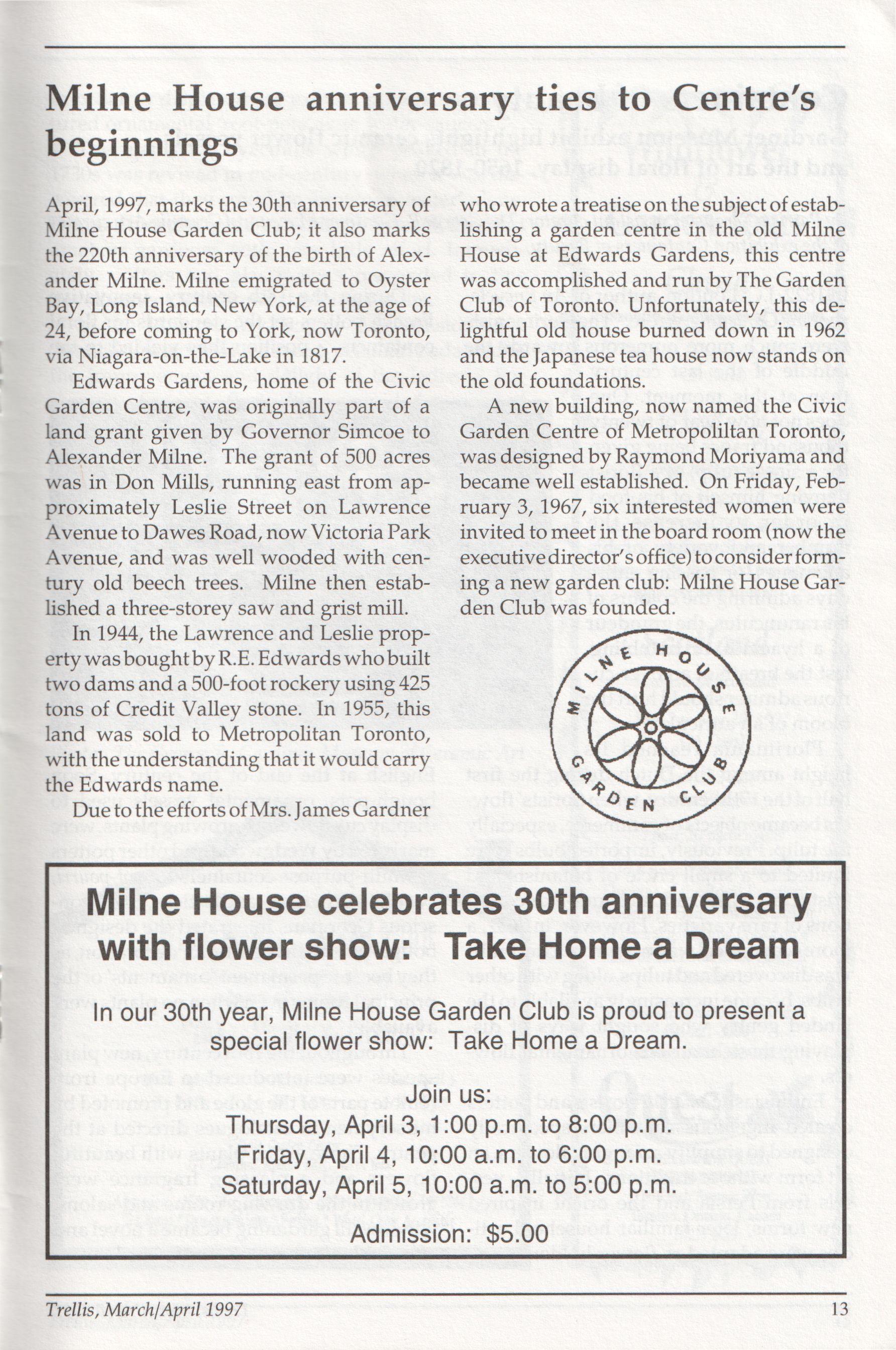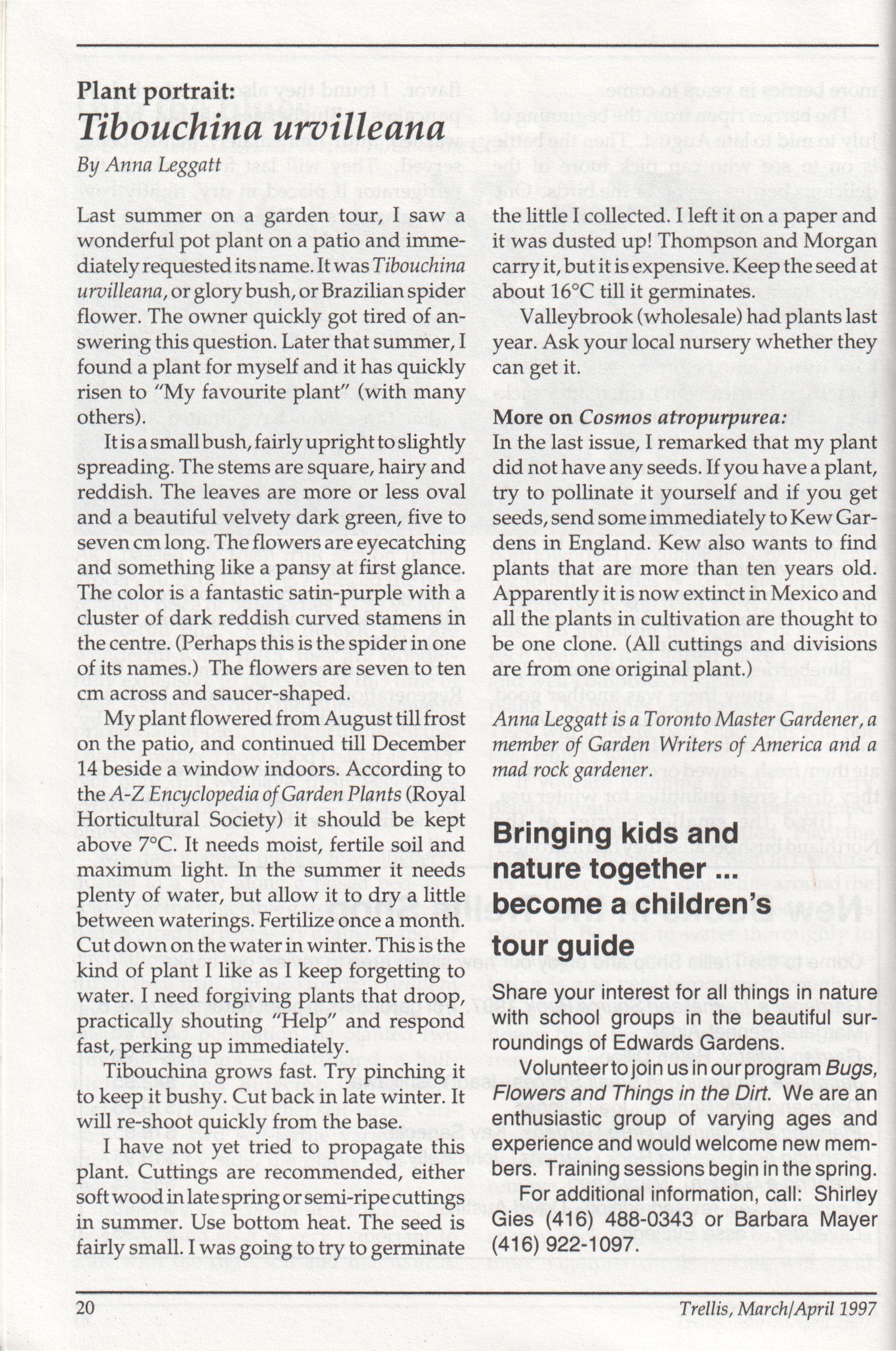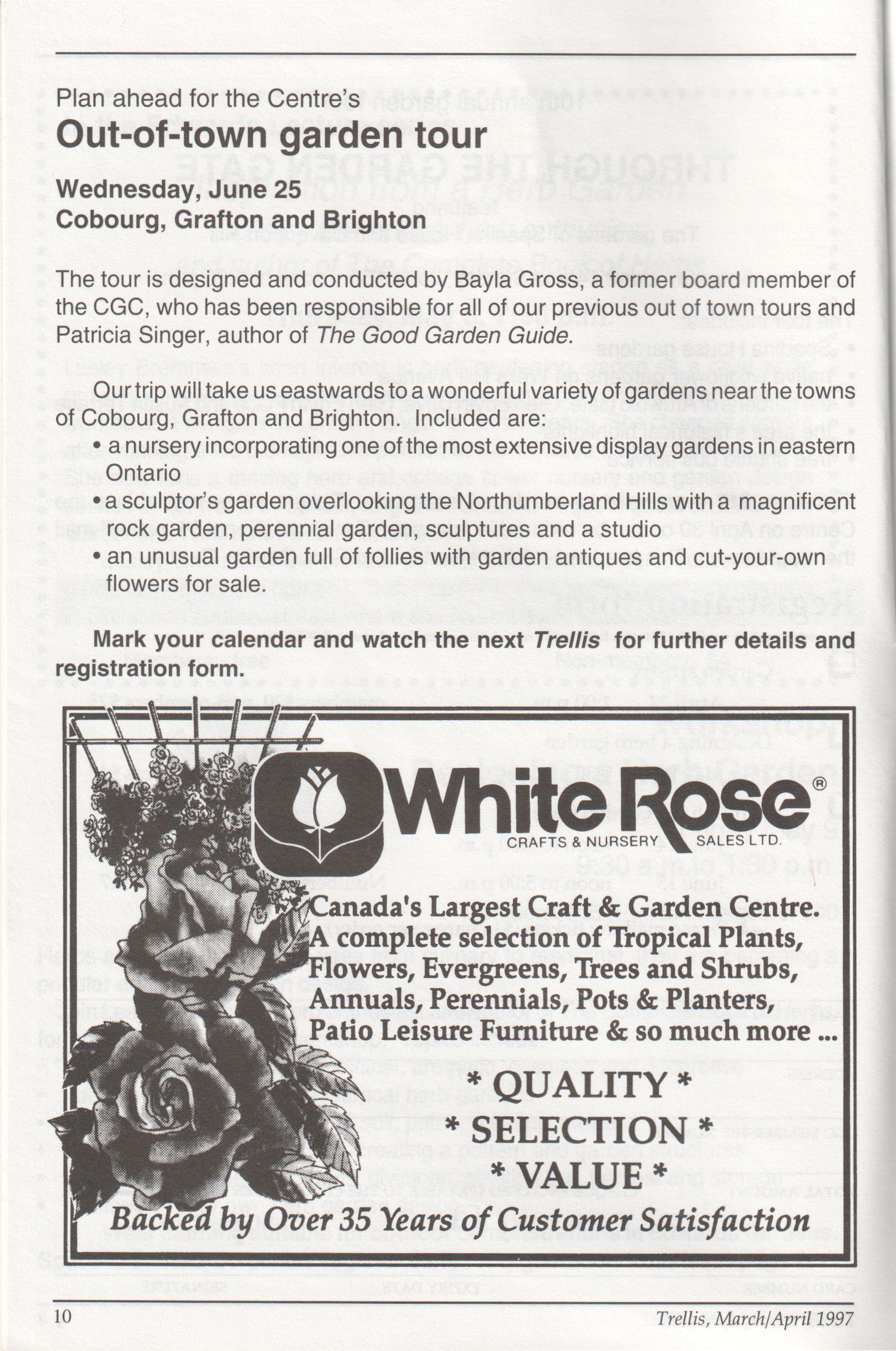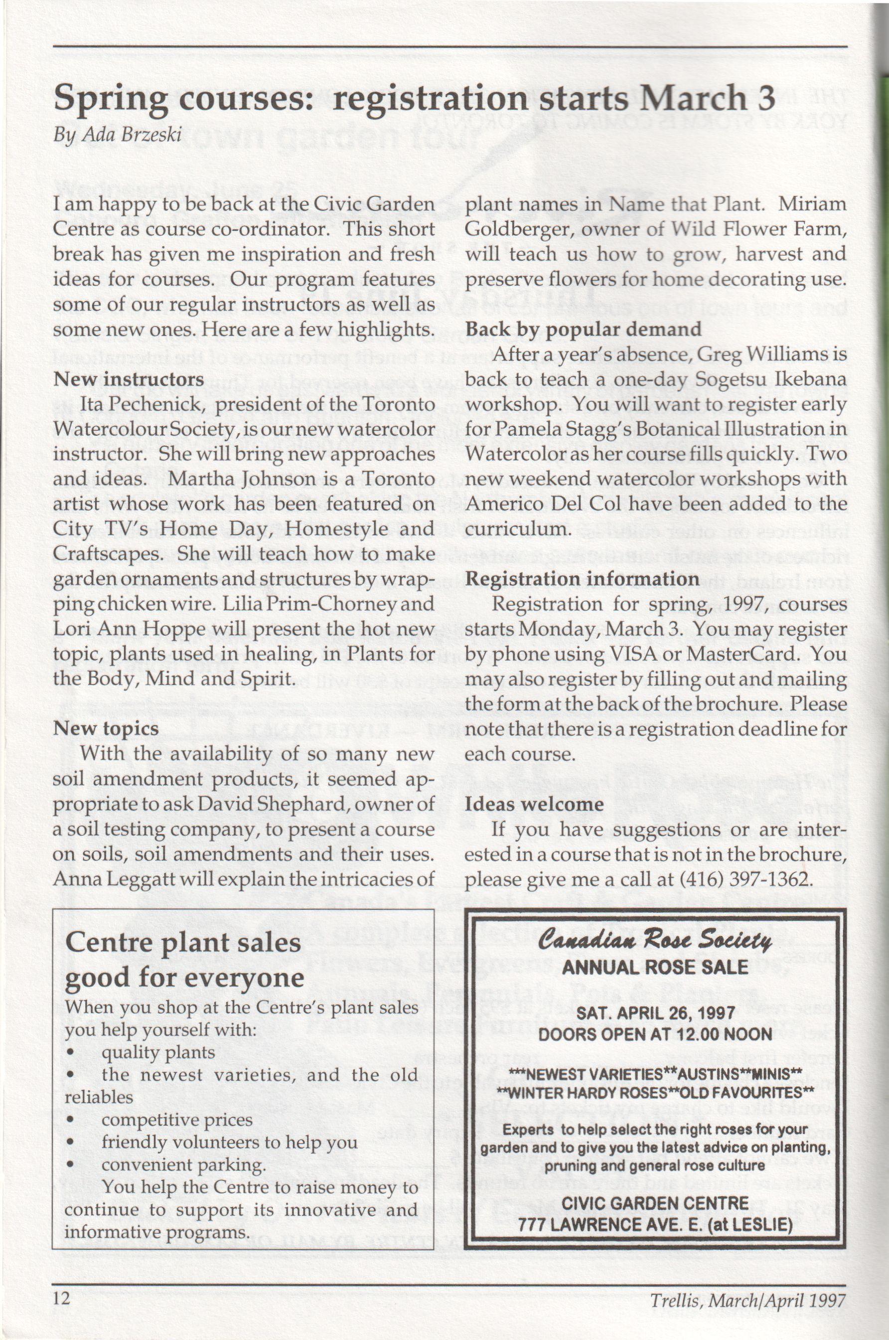 The newsletter of the Civic Garden Centre in Metropolitan Toronto March/April, 1997 Volume 24, Number 2