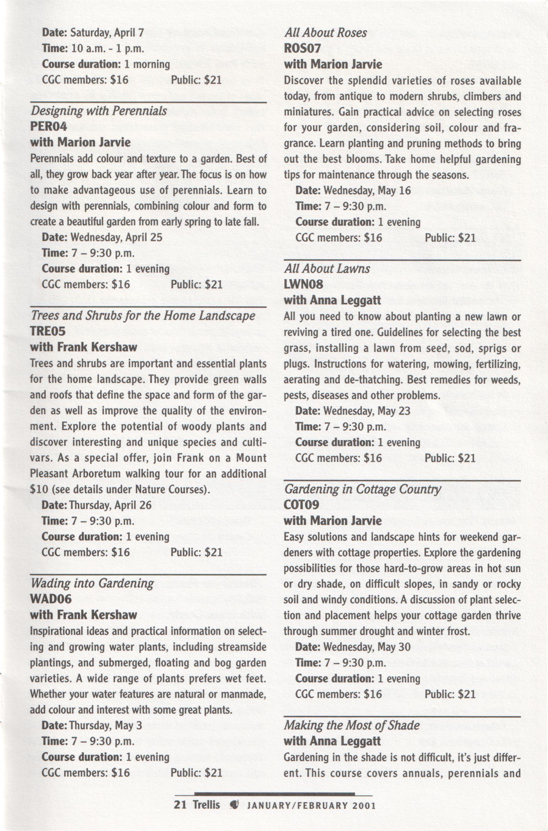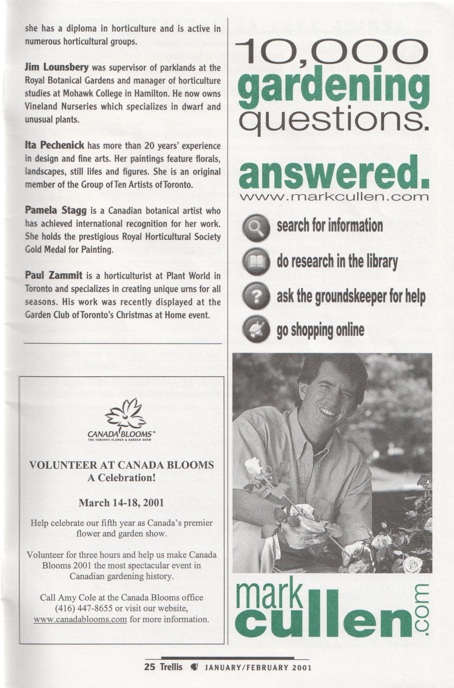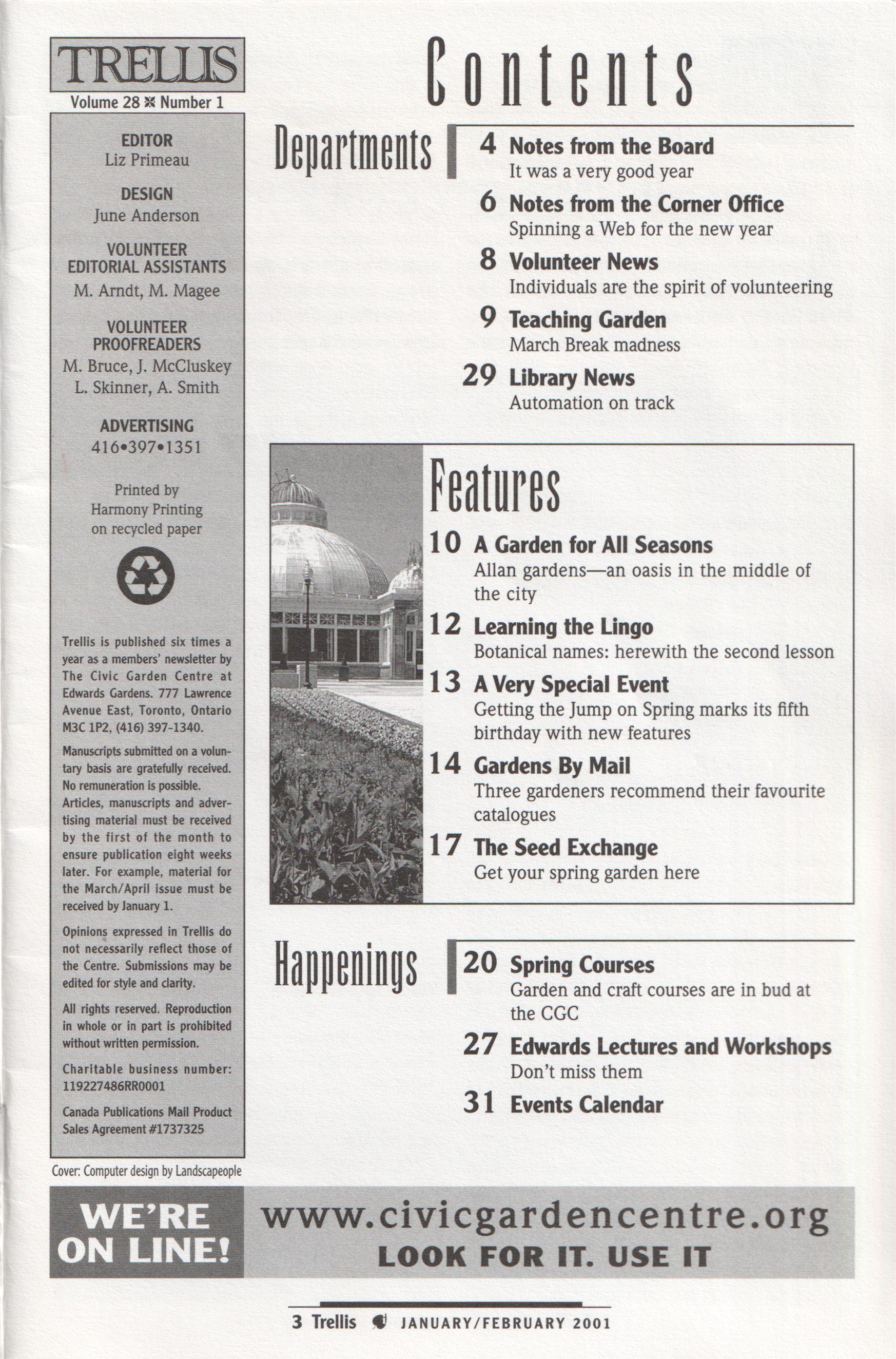and a dedicated committee, it has attracted more advertising revenue and has been able to grow in size and content. Gone is the newsletter format; here to stay are excellent articles on everything from Latin for gardeners to touring historic Toronto gardens, as well as all the information you need about what is going on at your Centre.